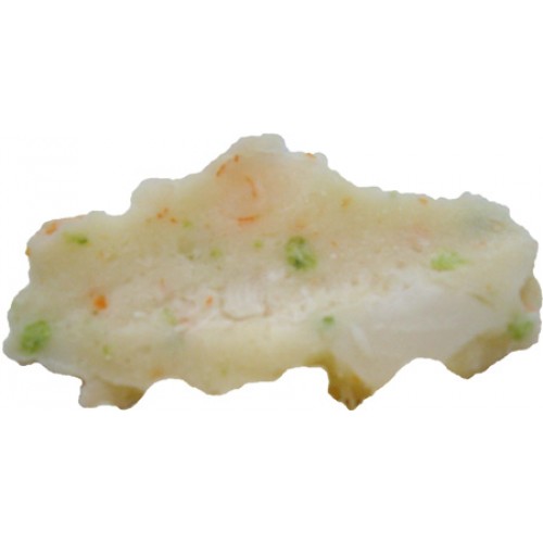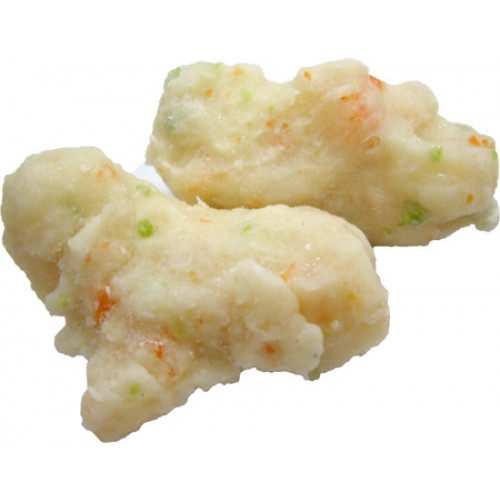 草蝦碎末混和魚漿及蔬菜碎末混和而成的產品,做成北海翅的形狀,沒有油的成分,口感鬆軟,走健康路線。