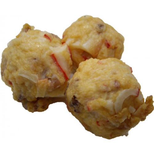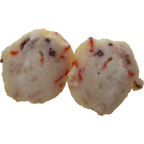 A級雪魚漿混合大量魷魚塊及魚漿片,油炸之後口感Q脆,外型似龍蝦球,重點在口味香甜肉多汁多又耐煮切面的白色都是花枝,川島出品魚漿保證